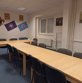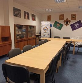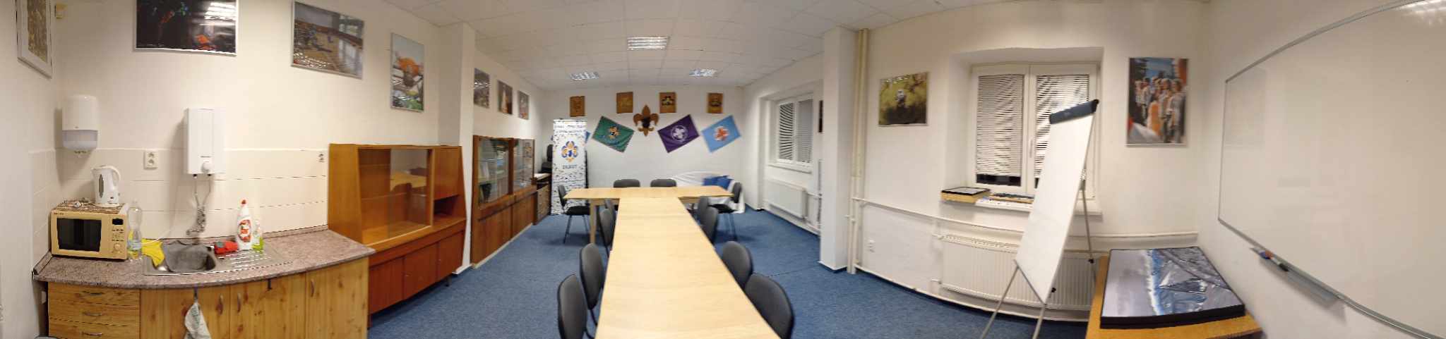 Také Vy si můžete zasedací místnost zapůjčit (pro skautské účely), nebo pronajmout. Místnost se pronajímá za 100Kč/osoba/noc. Foto níže.