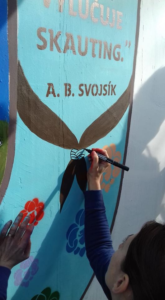 Skauti byli pozváni umělcem Nikolou KHOMA Vavrousem. Zapojili se, aby se postavili za své hodnoty, které Junák pevně definují. Mezi ty patří také svoboda. Junák byl pro svou demokratičnost minulými režimy třikrát zakázán. Proto „své“ písmeno J skauti ozdobili vyobrazením skautského tábora a připojili citát A.B. Svojsíka, zakladatele skautingu u nás: „Skauting vylučuje totalitu, totalita vylučuje skauting.“ Doufáme, že nikdy my ani další generace nezažijí opak.